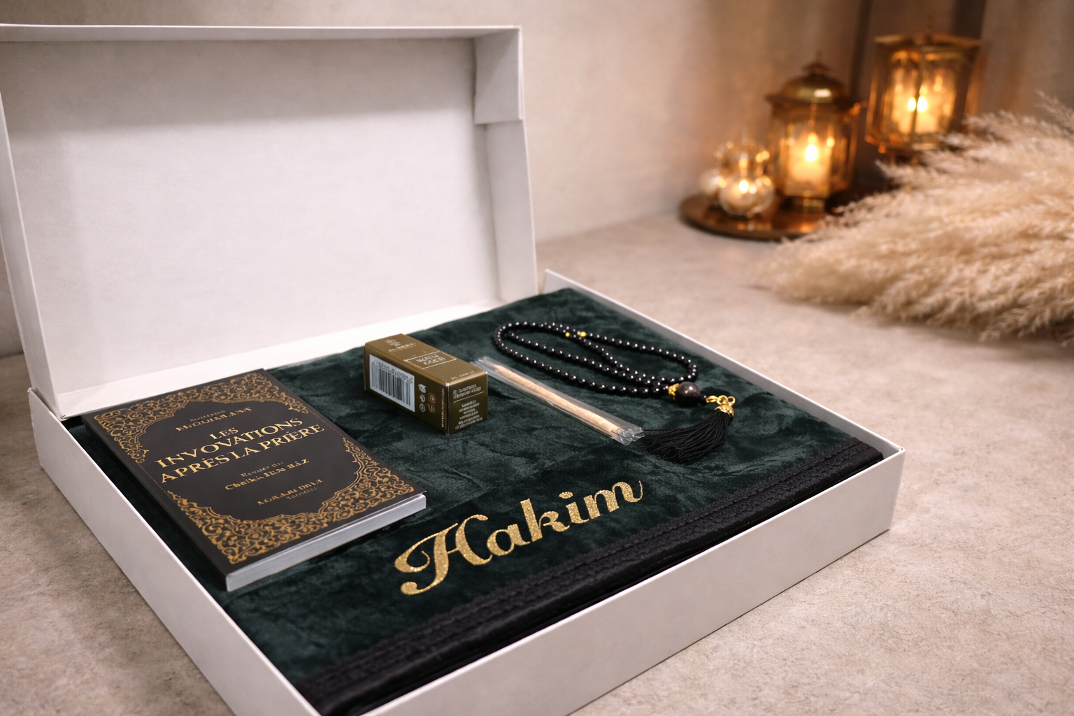 Coffret musulman noir personnalisé – Cadeau islamique avec prénom